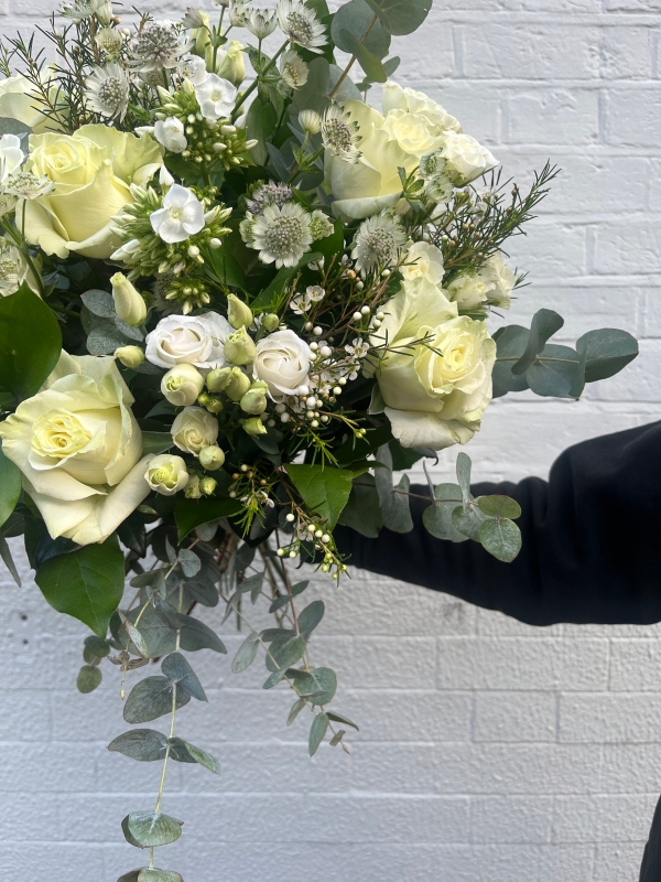 Our Arctic Charm arrangement features a soft mix of greens and whites, showcasing dainty blooms and smaller focal flowers for an effortlessly refined look. Elegant and understated, this bouquet captures a sense of freshness and tranquillity — perfect for those who appreciate subtle beauty and natural grace.